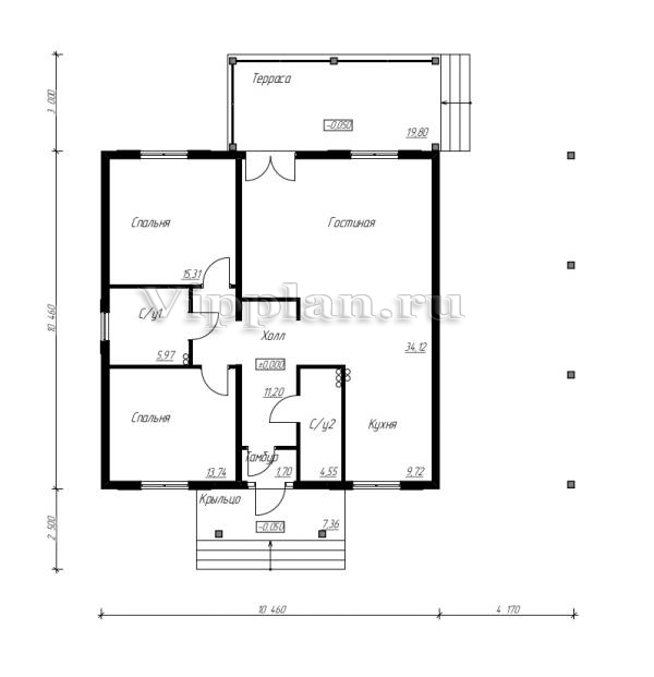 | Размеры дома: | 10.4м×10.46м |